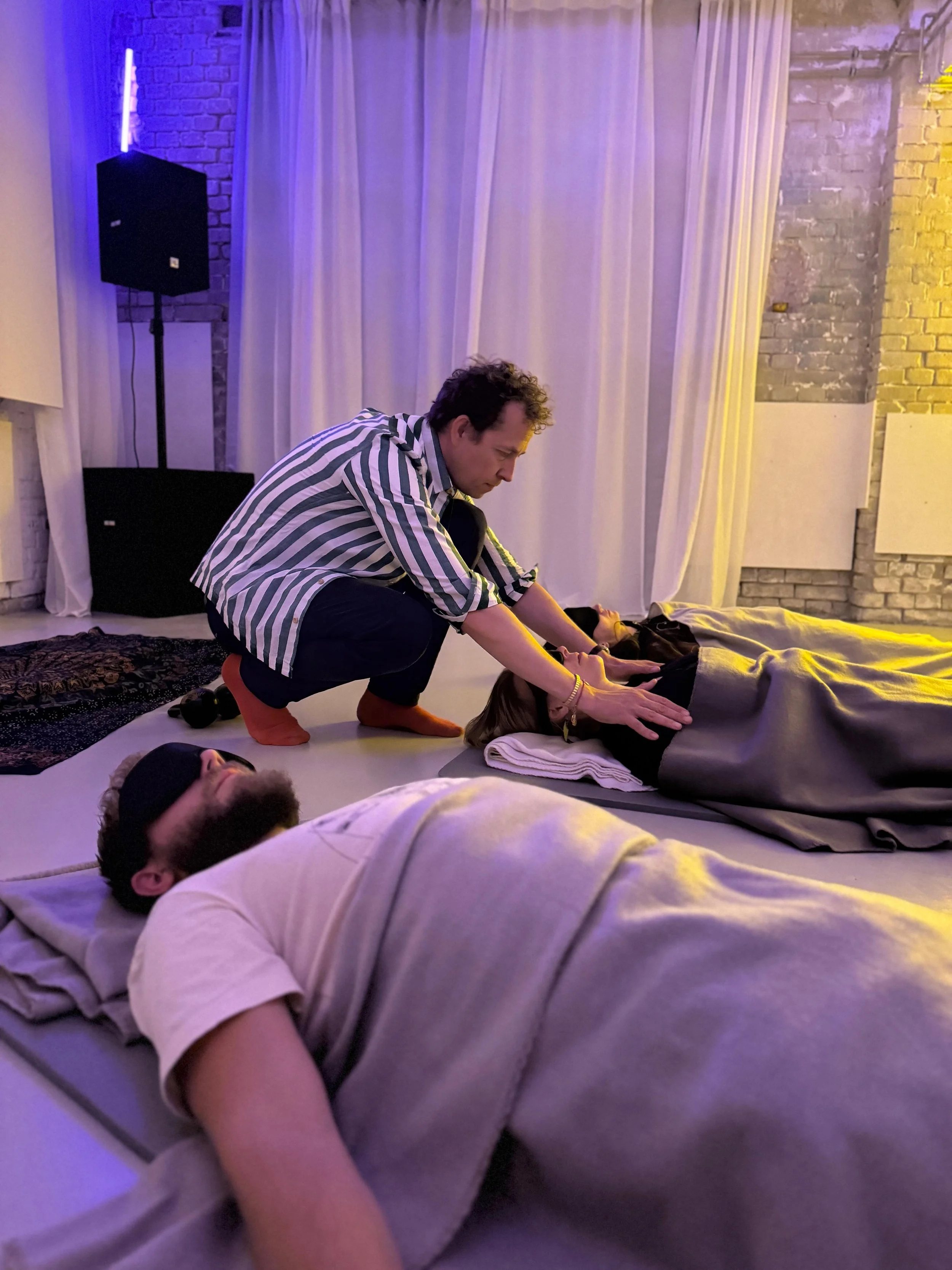 Während meiner Ausbildung zur Atemtherapeutin bei naou (Lichtatmung / Klaus und Vidya Ulbricht) lernte ich Basti kennen. Wir haben beide ebenfalls eine Ausbildung in Energiemedizin und binden unsere Fähigkeiten zur Unterstützung der Selbstheilungskräfte in unsere Atemsessions mit ein. Seit 2022 geben wir gemeinsam Breathwork-Sessions in Berlin.